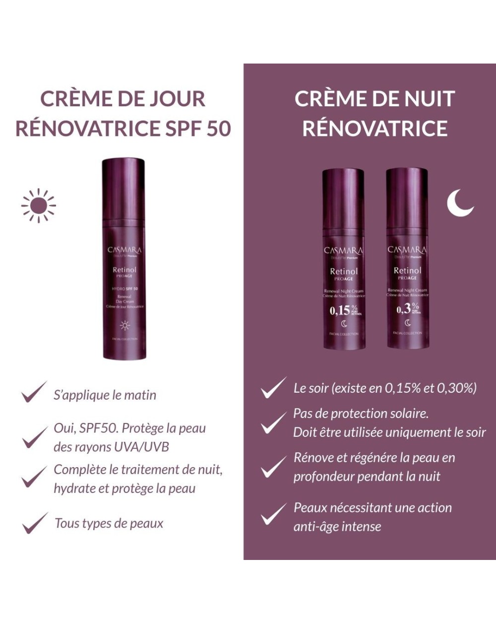 Offre Exclusive : Crème de jour SPF 50 + Crème de nuit 0,15% = Trousse Casmara OFFERTE