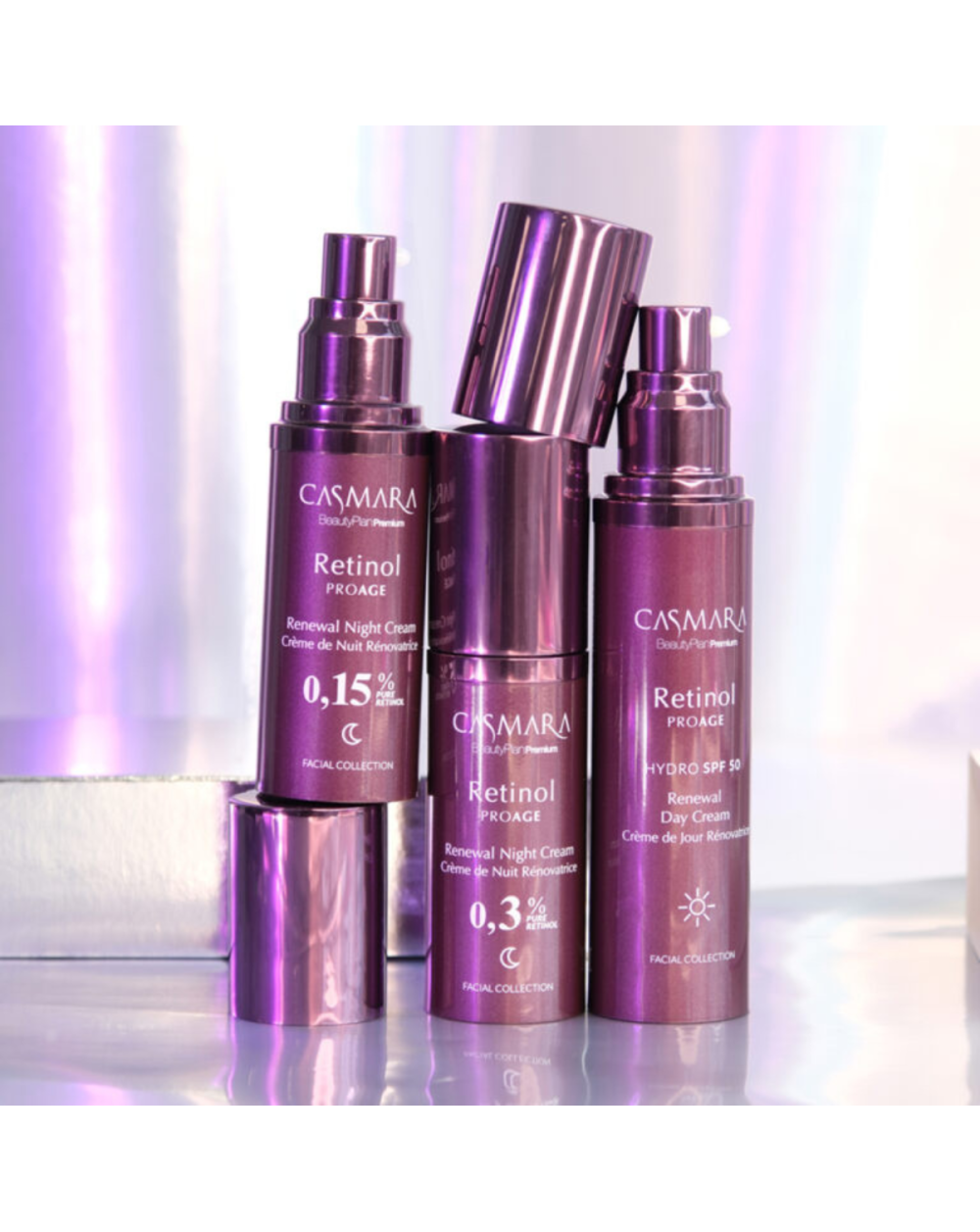 Restaurez et régénérez votre peau pendant la nuit grâce à la crème de Nuit Retinol PROAGE. Disponible en 0,15 % ou 0,30 % de rétinol pur, il cible rides, taches et perte de fermeté, tout en améliorant l’élasticité et la texture de la peau.