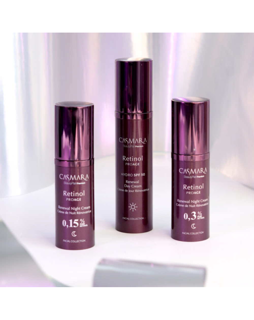 Offrez à votre peau le soin anti-âge complet avec notre duo Retinol PROAGE. La crème de jour SPF50 protège, hydrate et revitalise votre peau, tandis que le sérum concentré au rétinol pur régénère et lisse les rides et ridules. Ensemble, ils maximisent les résultats pour une peau visiblement plus jeune, lumineuse et ferme.