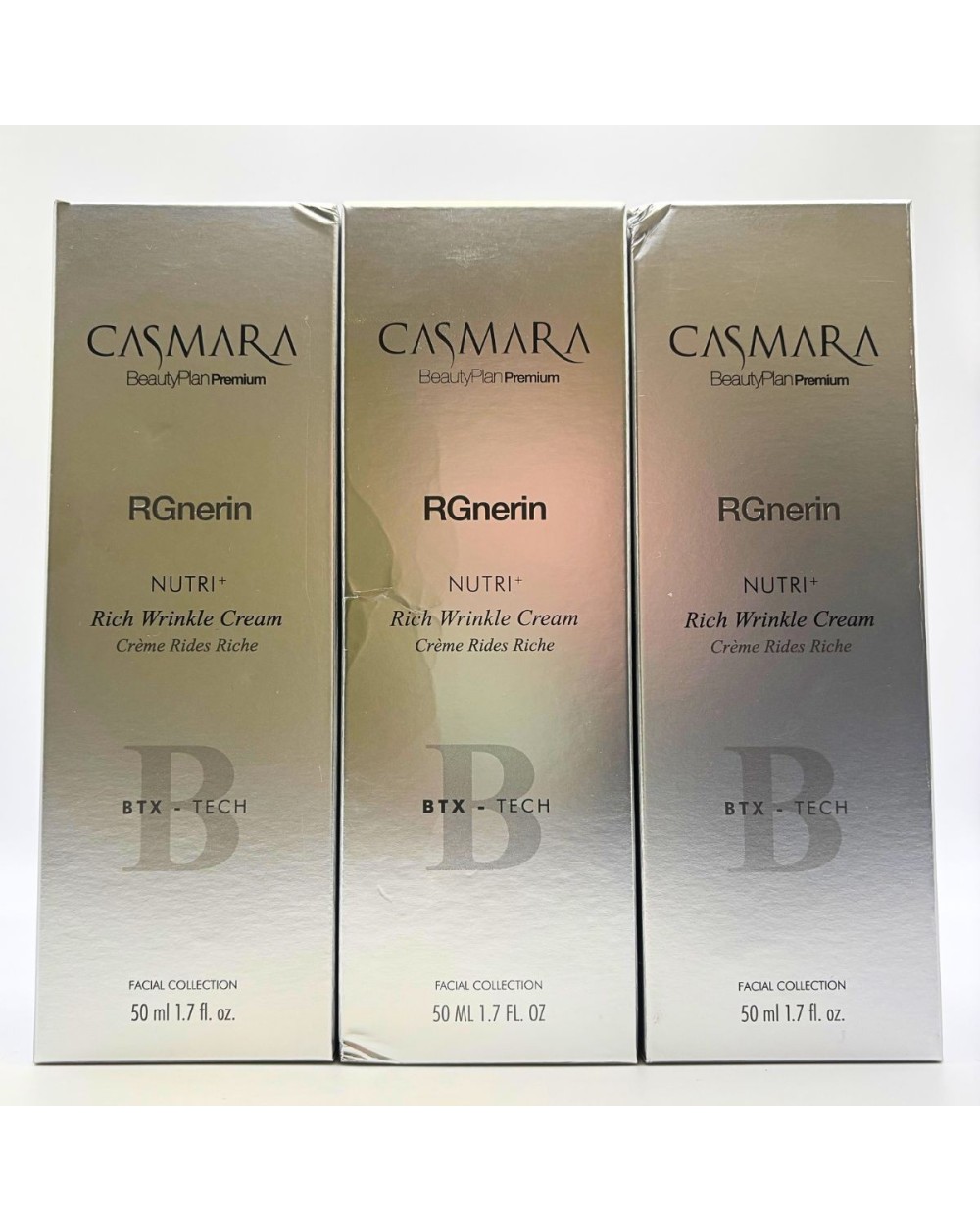 RGnerin est un traitement professionnel innovant à haut pouvoir perfecteur grâce à une stratégie antirides X 4 qui comble, régénère, lisse la peau, et inhibe les mouvements répétitifs du visage grâce à son extraordinaire effet botox et une combinaison avancée de principes actifs multifonction.