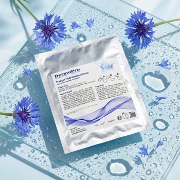 2. Verser le sachet de poudre dans un récipient sec. Ajouter ensuite 90 ml d'eau tiède. Mélanger énergiquement avec une spatule afin d'acquérir une fine pâte que l'on applique ensuite directement sur la peau.