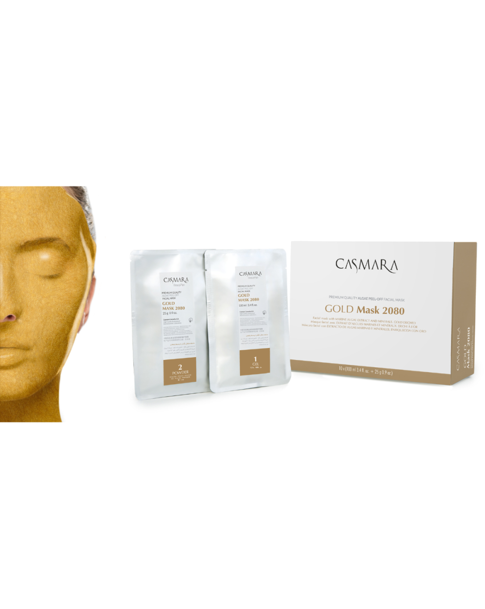 Un masque visage à base de POUDRE D'OR DE 24 CARATS, DE MINÉRAUX et D'EXTRAITS D'ALGUES MARINES.