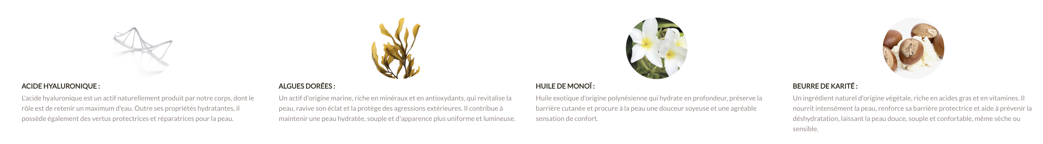 Découvrez nos formules extraordinaires, rapides d’absorption, aux textures uniques et aux parfums qui vous séduiront.